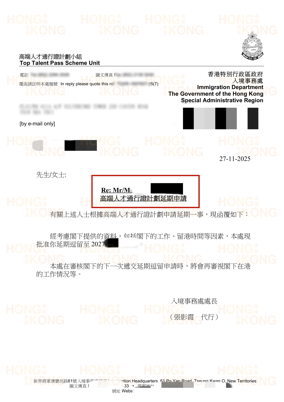 在续签文书上,针对J先生居住时间短、孩子离港等问题,我们也阐述了他的家庭特殊情况,并给出了合理的解释,同时并强调了J先生在香港注册公司,通过公司的业务合同+个人税务+审计报告等,证明其公司业务真实且对香港有贡献,弱化J先生在港时间少的问题,并附上了未来2年深度扎根香港的发展蓝图。